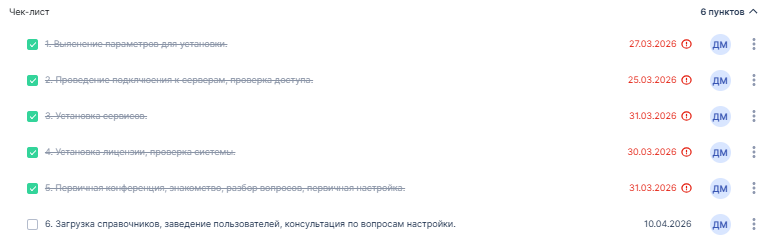 При отметке (проставлении галочки) в пункте чек-листа, он считается выполненным и зачеркивается.