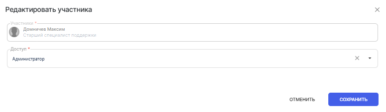 Администратор: сотрудник с расширенными правами доступа, имеющий возможность редактировать метаданные проекта и управлять списком участников.