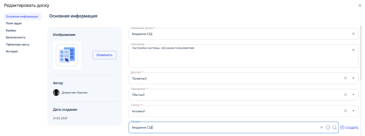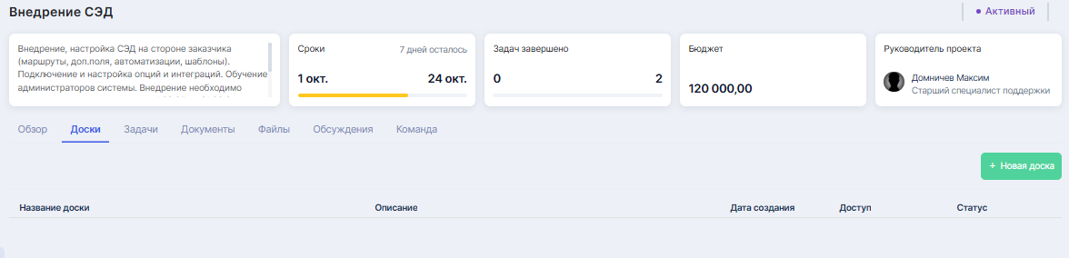 Важно! После создания доска появится в интерфейсе выбранного проекта во вкладке "Доски".